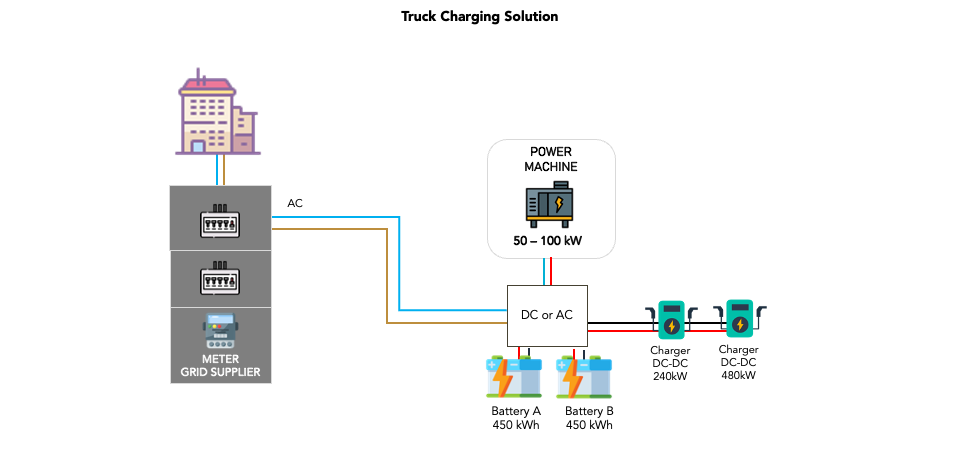 Depending on desired powers and peak power, we recommend the right power machine model and combine this with energy storage and fast chargers.